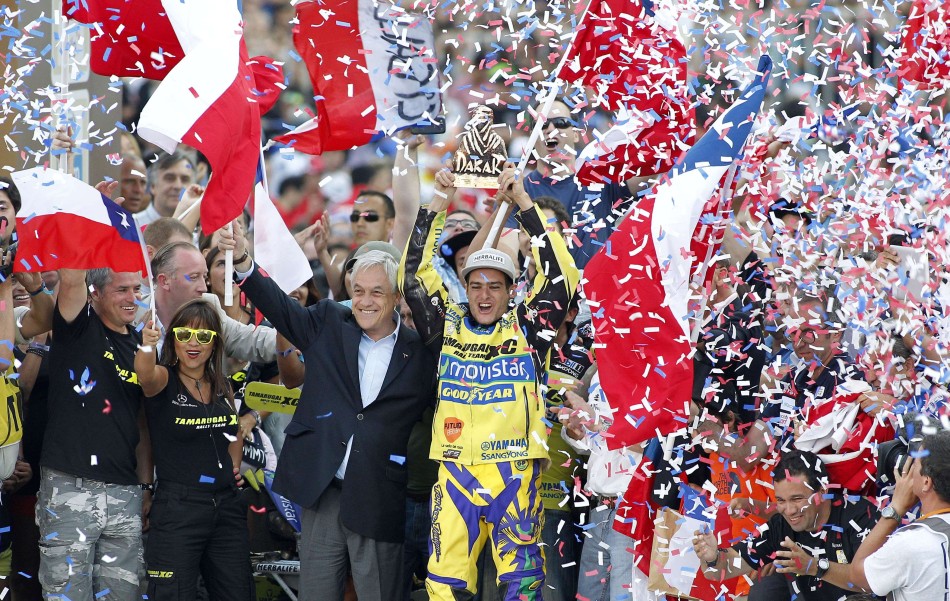 四輪摩托車組,上屆亞軍智利車手卡薩萊完美收官拿下了個(gè)人在本屆賽事的第7個(gè)賽段,并最終以68小時(shí)28分04秒的總成績首次獲得了達(dá)喀爾賽的總冠軍頭銜,波蘭車手索尼克和荷蘭的侯塞尼獲得亞軍和季軍。