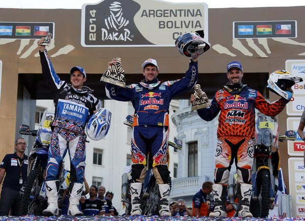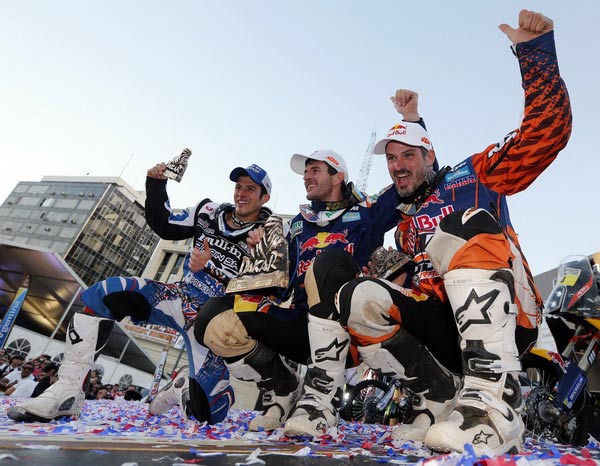 2014達(dá)喀爾拉力賽落幕 前三名合影