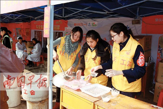 廣東封開縣321國道一個(gè)服務(wù)站里,志愿者為返鄉(xiāng)摩托車大軍準(zhǔn)備了姜湯。