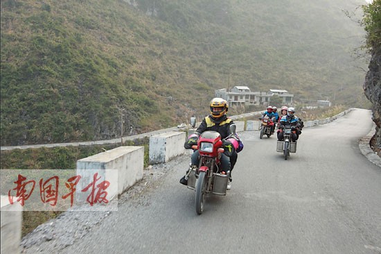 ●南國早報(bào)記者騎摩托車,跟隨廣西老鄉(xiāng)體驗(yàn)?zāi)ν写筌姺掂l(xiāng)路,歷時(shí)30個(gè)小時(shí)