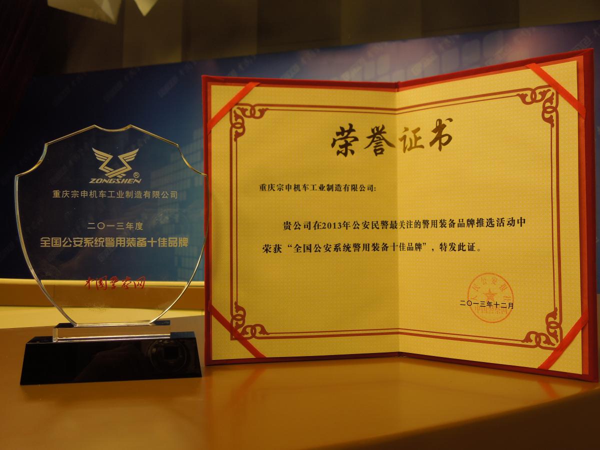 宗申摩托獲“全國(guó)公安系統(tǒng)警用裝備十佳品牌”稱號(hào)