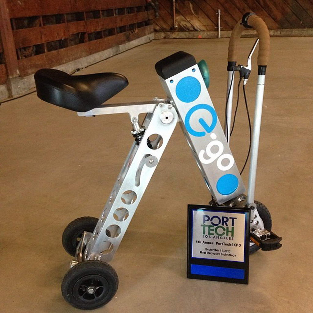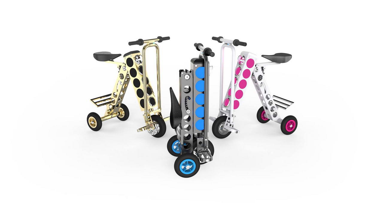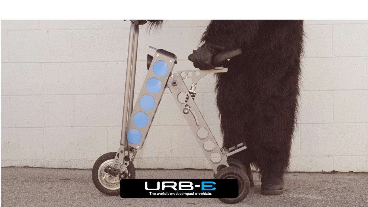 在今年一月份的拉斯維加斯國際消費電子展覽會上展出的一臺號稱世界上最小巧的電動車:URB-E。該車采用三輪行走,折疊后體積相當小,而車重只有12公斤但能以24公里/小時行走32公里(滿電),250瓦無刷電機驅動,能量來源為36伏鋰離子電池,家用電源3小時可以充滿,5000次壽命。