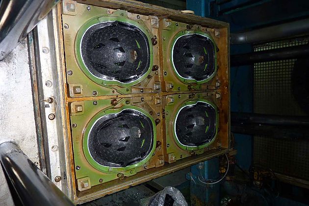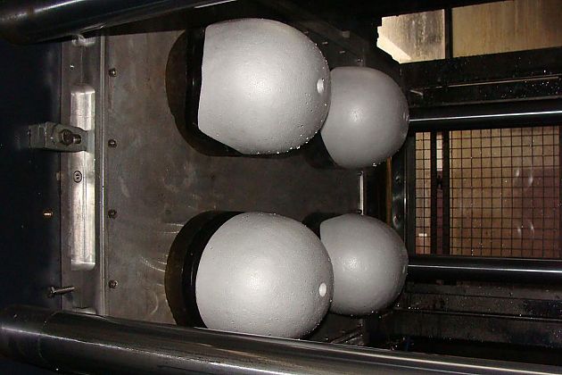樹脂以液態(tài)注入頭盔外殼模具機(jī)器,通過子母模具的擠壓成型。每一副頭盔模具針對不同尺寸同樣經(jīng)過CAD/CAM模型設(shè)計,用于制造頭盔的模具都有使用周期,每推出一款新頭盔就要淘汰一批模具。從注入到成型,每一個頭盔模具用時大約60秒鐘,之后就進(jìn)入了下一步,打磨、噴涂、貼花。然后安裝面罩,對面罩進(jìn)行防劃、防霧處理。