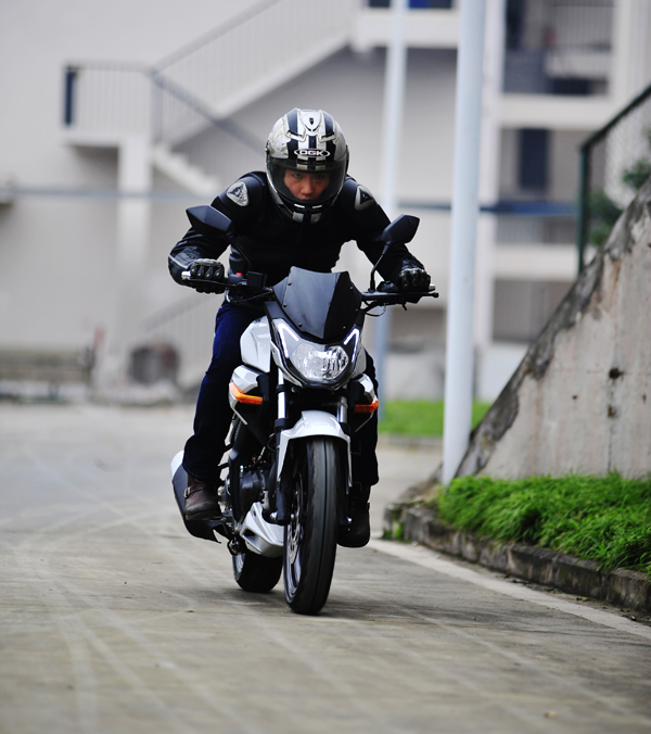 對一款摩托車來說,擁有了一流的動力平臺,只是成功了三分之一,真正的成功源于表里如一。讓一款產(chǎn)品達到表里如一,靠的是態(tài)度和實力,建設(shè)的實力自然不容置疑,只需要用態(tài)度來證明了——集轉(zhuǎn)速、里程、速度、燃油量、擋位顯示于一體的組合式液晶儀表代表了現(xiàn)今同類車型的最高規(guī)格;融入高端轎車燈具導(dǎo)光帶技術(shù)的LED燈具系統(tǒng)有力提升了整車檔次;規(guī)格為100/80-17、130/60-17的車輪配合寬幅高檔真空胎,是運動與實用功能的完美兼容;優(yōu)質(zhì)高拉力鋼管構(gòu)成的多三角形鉆石車架強度高、韌性足,整體穩(wěn)定性能足以媲美250mL級以上街車;源于重型街車的大直徑、長行程中央獨立式后懸掛系統(tǒng)是舒適駕乘和運動駕馭的堅強后盾;雙活塞卡鉗配備大規(guī)格剎車盤的前制動系統(tǒng)是安全行車的有力保障……