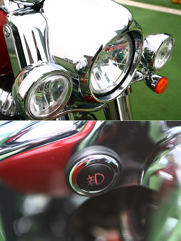 從頭燈、把手到油箱上的儀表,鍍鉻元件的運用毫不手軟,這點絕對是美式機車的堅持。