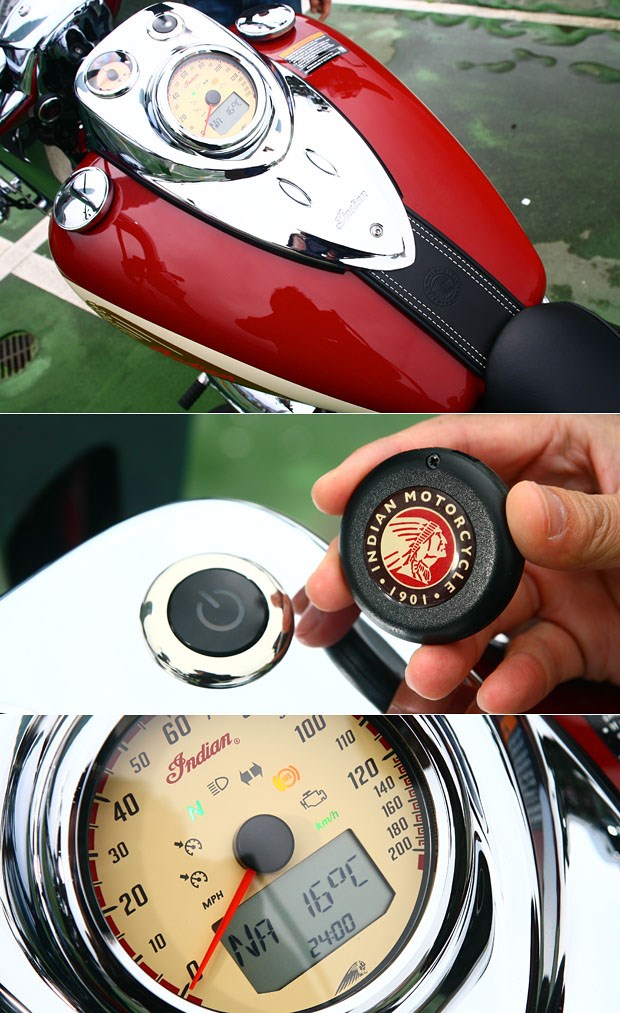 油箱上的儀表總成整合了按鍵式開關與儀表板,時速表內有著包含檔位、時間、溫度計與里程表等旅程電腦資訊。