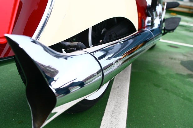 此次試駕的Indian Chief Classic車型,車價為新臺幣130萬,不過此輛針對排氣管加以改造,造型與原廠稍有不同。