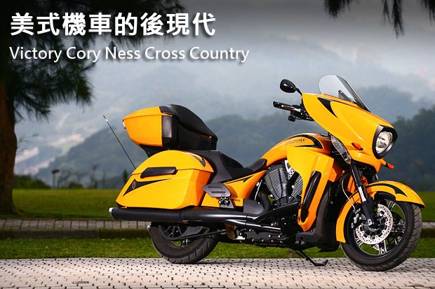 艷黃色的車色、超過兩米七的車長,還有那碩大的前整流罩、后箱與側(cè)箱,在這充滿著小速克達的臺灣道路上,Victory這次派出的代表,Cory Ness Cross Country Tour很是突兀,但另一方面,就是吸睛的絕對。