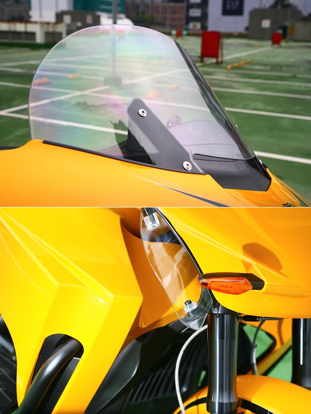 高聳的前擋風罩,與下方兩側(cè)可以依照騎士需求選擇打開或阻擋,增加導(dǎo)流的自主性。