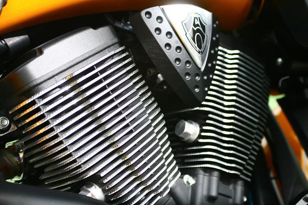 1731c.c.排氣量的V型雙缸具備15.2kgm的扭力峰值,而引擎一旁的散熱鰭片更以切銷手法裝飾,相當精美。
