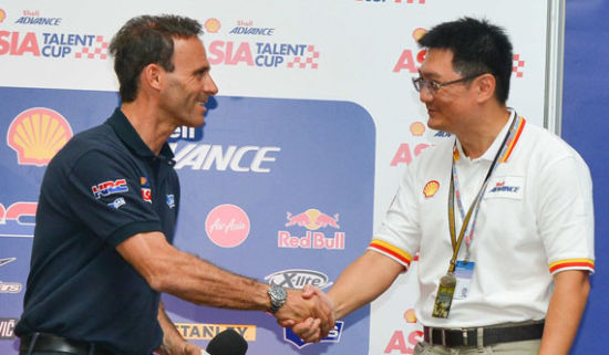 殼牌愛德王子全球品牌經(jīng)理顧家泰(Kar-Tai-Koh)和MotoGP協(xié)會負責人阿伯特_皮格(Alberto-Puig)