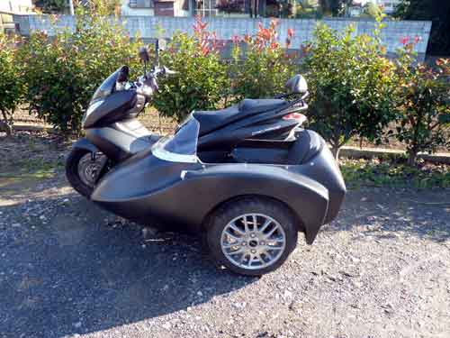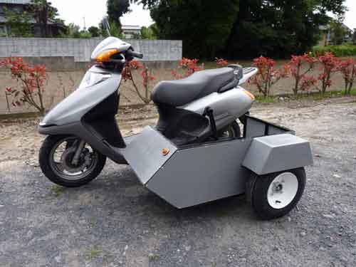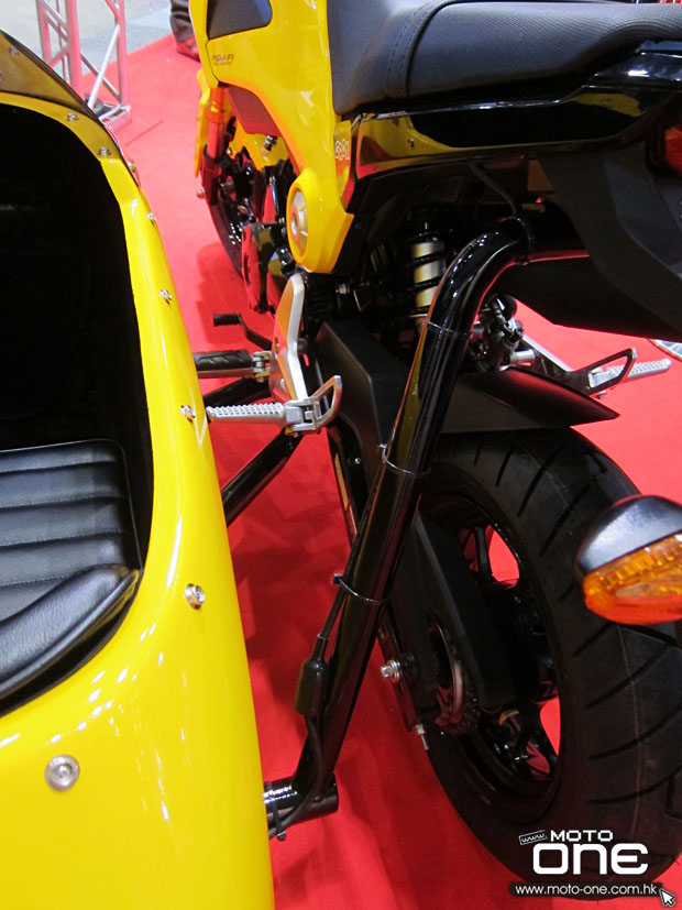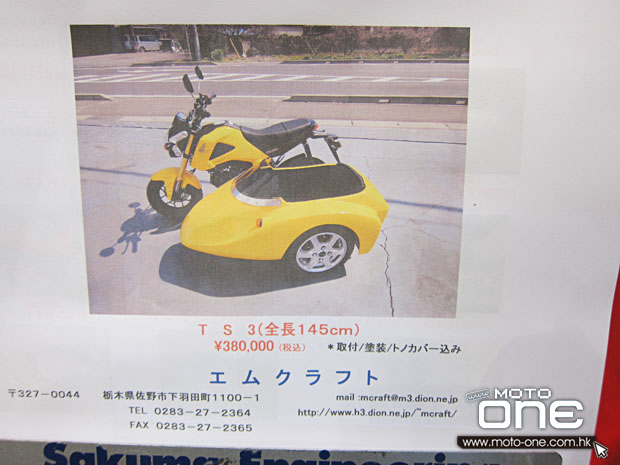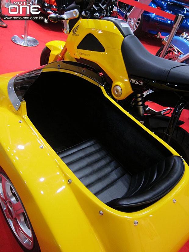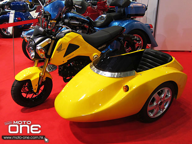 在2014東京電單車展中,除了有「忍者龜」HONDA MSX125外,亦有改裝公司展出裝有sidecar的MSX,使這臺(tái)本已非??蓯鄣陌賲捫歉油婢呋塑囀侨毡疽凰鶎iT制作sidecar專門店的作品之一。