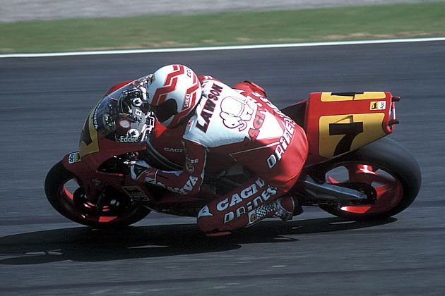 上個世紀后葉,Cagiva進入了瘋狂的時代,分別于1985年和1987年收購了另外兩個意大利摩托車品牌Moto Morini和Husqvarna,又在1991年成功買下頂級摩托車品牌奧古斯塔(MV Agusta)的商標持有權,同年Cagiva還簽下了前世界冠軍騎手Eddie Lawson。不負眾望,1992年,Eddie Lawson在匈牙利為Cagiva車隊拿下了第一個錦標賽冠軍,John Kocinski也騎著Cagiva GP500在1994年為車隊拿下了年度第三的成績。