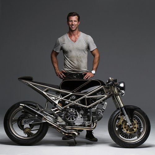 這輛車除了保留原廠的車輪,發(fā)動機和一半的車架之外,其余部分都是訂制的。寶貨新增的后擋泥板,薄膜座椅,以及全新的定制郵箱,還采用了哈雷戴維森的頭燈,這些改變給這款歐洲摩托車加入了新的野獸基因,看上去更加兇猛。