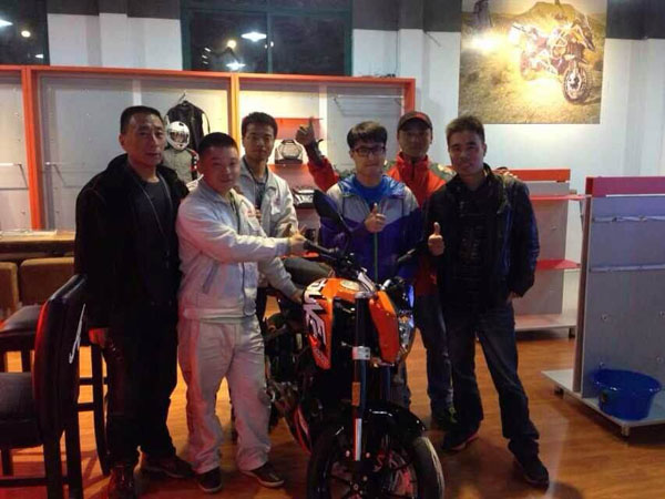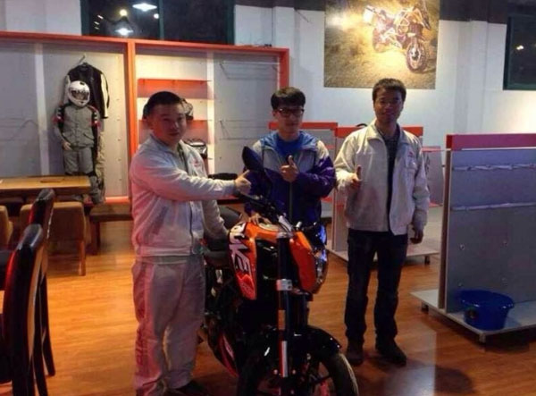 4月19日上午,春風(fēng)動力CKD組裝的車型200 Duke 首批車型從春風(fēng)動力倉庫順利發(fā)貨出,下午成功抵達杭州經(jīng)銷商“天祿中國會”。春風(fēng)動力CKD組裝車型200 Duke首次完成交付,杭州車友“總有毅種循環(huán)”成KTMR2R 200 Duke 全國首位車主。