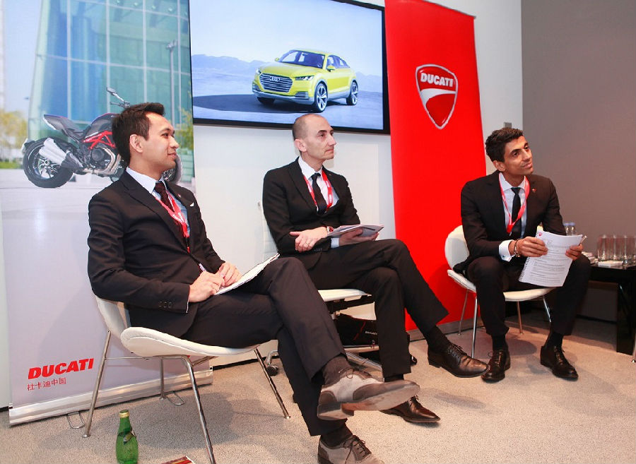 杜卡迪高層參觀坐落酷車小鎮(zhèn)的杜卡迪北京展廳