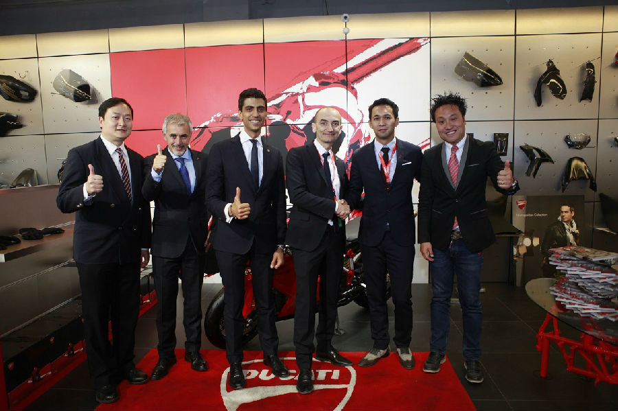 Claudio Domenicali 和 Pierfrancesco Scalzo 與杜卡迪中國領(lǐng)導(dǎo)友好合影