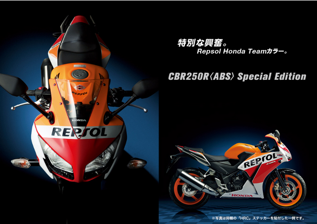 HONDACBR250R于日本4/24正式販賣,另外推出REPSOL配色的ABS特別版則于5/20日上市。