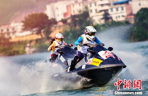 來(lái)自四川華威摩托艇隊(duì)的段振坤是本次比賽為數(shù)不多的女飛人選手,她之前是一名滑水運(yùn)動(dòng)員。對(duì)于這種轉(zhuǎn)行,她坦言到,“其實(shí)水上飛人和滑水差不多,都是雙腳踩在板上,對(duì)于身體的平衡性很相似的,所以上動(dòng)作比較快。也希望能發(fā)揮出自己的水平,展示給觀眾更好的一面。女飛人和男飛人的動(dòng)作相比,肯定有不同的地方,她說(shuō)道,“可能女運(yùn)動(dòng)員做動(dòng)作會(huì)更柔美些,男運(yùn)動(dòng)員則很剛強(qiáng)。”最后她補(bǔ)充道,“我目前的主要精力還是滑水,但飛人賽也算是我的主項(xiàng),畢竟我是國(guó)內(nèi)第一個(gè)玩水上飛人的女運(yùn)動(dòng)員,要保住這個(gè)頭銜。”