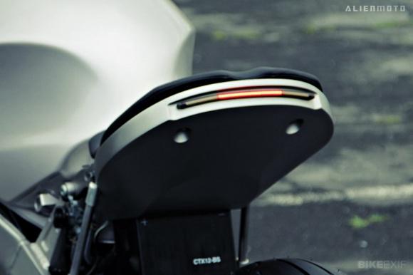 不同于那些看起來過于繁復(fù)冗余,萬分累眼的Streetfighter,這輛Ninja ZXR 750顯然是足夠簡潔,但也足夠吸睛(并不乏細(xì)節(jié))。Bill稱:“去掉一些不必要的組件是很容易的事,但是最大的挑戰(zhàn)莫過于重新設(shè)計的一體式副車架”。如其所言,這個將電氣組件和LED尾燈全部集成進(jìn)去的車尾來自一整塊鋁合金,打造難度頗高,經(jīng)由3D CAD輔助才得以成型。