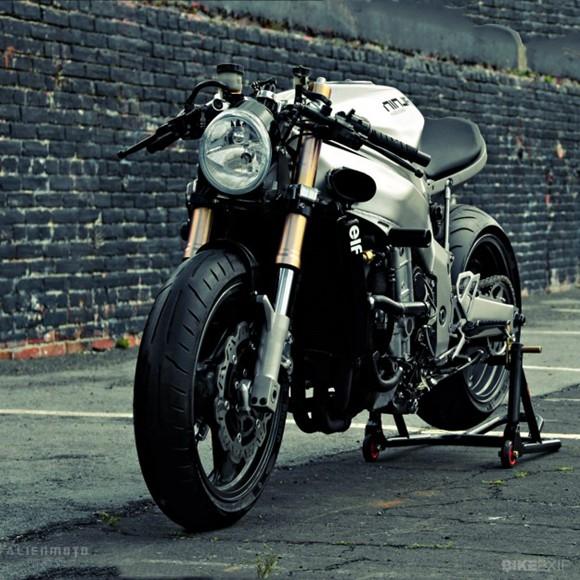 此外,來自哈雷V-Rod的大燈倒也和車身線條配的恰如其分。K&N冬菇頭空濾確保發(fā)動機(jī)能爆發(fā)出最大的潛能,最大120bhp的馬力加上減重過的車體,想必這輛Ninja ZXR 750應(yīng)該性能也足夠“驚艷”。這一次,Bill用他的作品再一次向我們論證了“少即是多”的設(shè)計真諦。