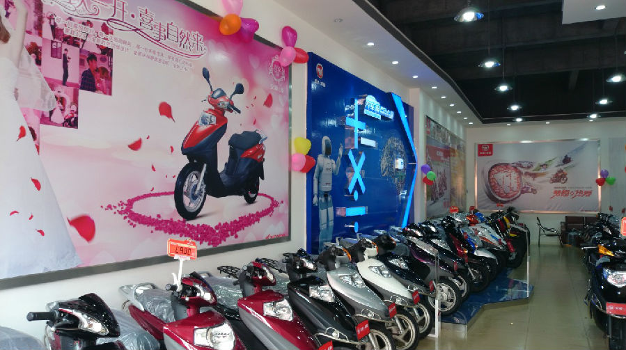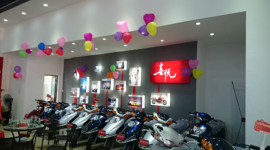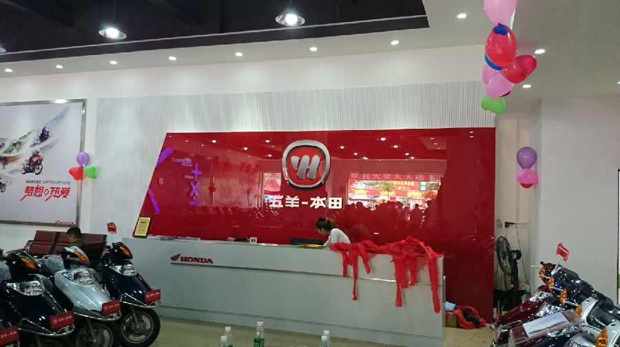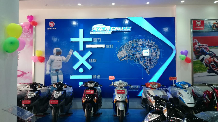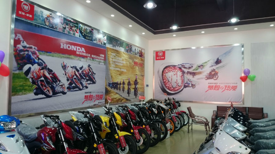 在市場(chǎng)調(diào)整初期,面對(duì)艱難的市場(chǎng)環(huán)境,耀強(qiáng)公司通過(guò)多種渠道,在縣城摩托車主銷市場(chǎng)腹地簽訂一間面積超過(guò)300平米的銷售店,新店隨即進(jìn)入緊張的裝修階段,嚴(yán)格按照五羊-本田品牌店最高建店標(biāo)準(zhǔn)進(jìn)行建設(shè);伴隨著新店的建設(shè),耀強(qiáng)公司還投入大量資金,在縣城、城郊及鄉(xiāng)鎮(zhèn)進(jìn)行五羊-本田品牌宣傳及新產(chǎn)品推廣。