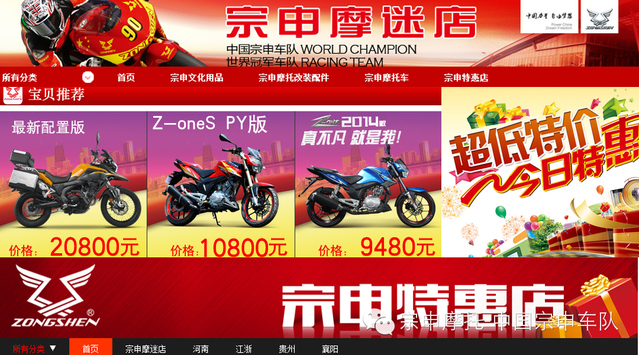 宗申摩托車網(wǎng)絡(luò)銷售“宗申摩迷店”及“宗申特惠店”介紹