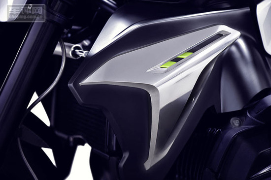 車身線條動感十足,油箱、后輪以及懸空的座椅,簡潔干練,整體極具未來感,最大的特點就是管狀式三角形車架設計。