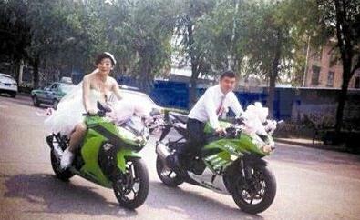 核心提示: 昨日上午,一支由約15輛摩托車組成的迎親隊伍出現(xiàn)在澗西區(qū)的道路上,新郎方雷和新娘王珊分別駕駛一輛摩托車,在路上并駕齊驅(qū)