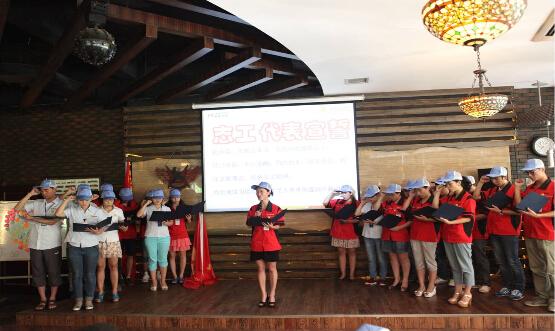 隨后,王總將鑫源志工旗莊嚴的授予給了志工代表。志工代表們在志工旗幟下莊重宣誓——“我承諾:我愿意成為一名高尚的鑫源志工。盡己所能,不計報酬,幫助他人,服務(wù)社會,踐行志愿理念,傳播人文精神,為實現(xiàn)成為值得信賴并受人尊重的鑫源貢獻力量!”聲音鏗鏘有力,散發(fā)出濃厚的正能量。