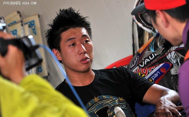 師雨萌雖然拿到亞軍,但這場(chǎng)比賽比較郁悶,他說(shuō):"第二場(chǎng)比賽,發(fā)車就被彭天偉超過(guò)了,之后一直壓著,怎么超也超不過(guò)去,心有余力不足了。"登上領(lǐng)獎(jiǎng)臺(tái)的彭天偉則很興奮,發(fā)車就沖到最前是他昨天比賽結(jié)束后就定下的戰(zhàn)術(shù),最終他以第二名沖過(guò)終點(diǎn),驚險(xiǎn)拿下總成績(jī)季軍。下圖為對(duì)手緊追彭天偉身后。