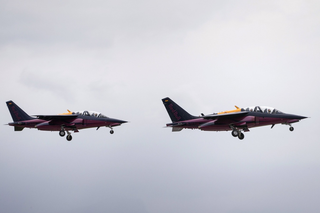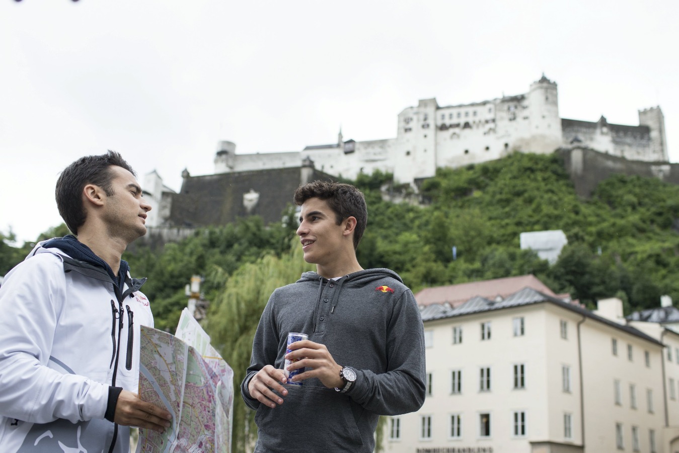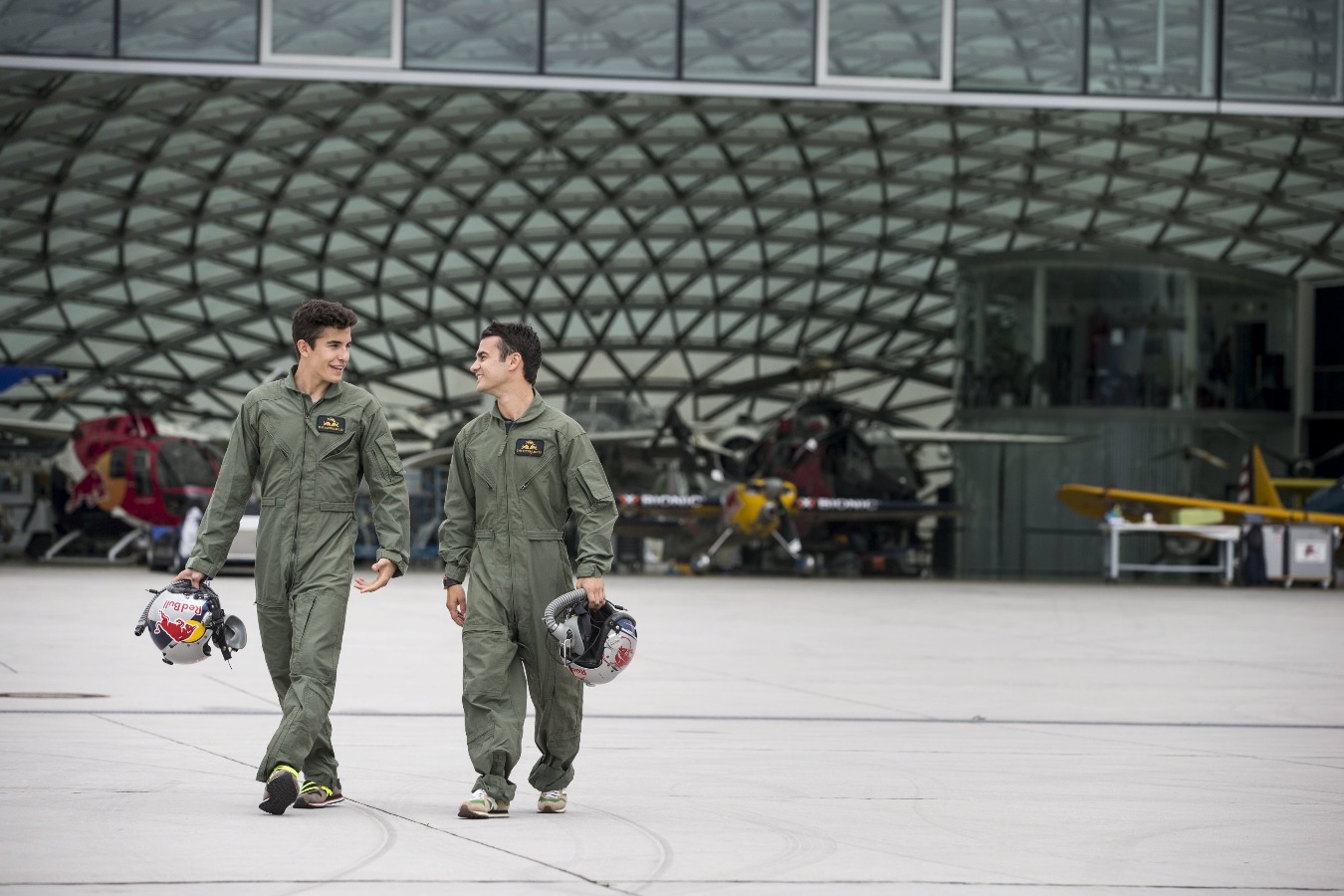 核心提示:薩爾茨堡,Repsol Honda 的兩位西班牙MotoGP車手、彼杜莎和馬昆斯,乘坐紅牛飛行特技隊(duì)的阿爾法噴氣雙座高級(jí)教練機(jī),壹嘗賽車和