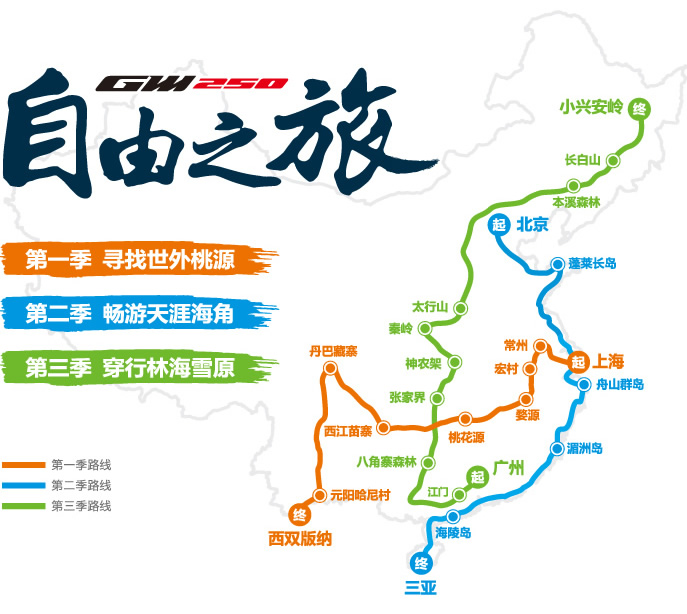 2014年8月16日,“GW250自由之旅”第一季《尋找世外桃源》將率先從上海出發(fā),一路向西,直至西雙版納,穿行于如詩如畫的美麗鄉(xiāng)村,尋找心中的世外桃源。此次旅程,更有神秘的重量級座駕——全新款GW250F相伴。想?yún)⑴c這場史上最強(qiáng)的機(jī)車體驗(yàn)之旅嗎?馬上報(bào)名吧!