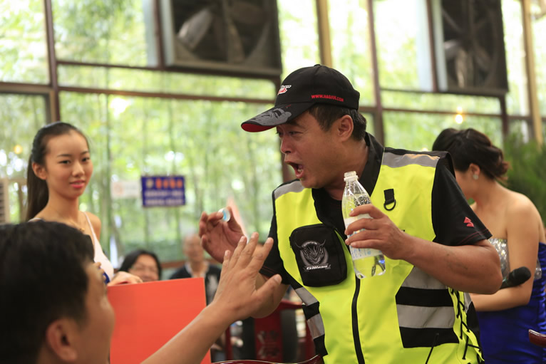 終極大抽獎(jiǎng),新款頭盔一個(gè),幾十名車友猜拳PK,冠軍樂透了。