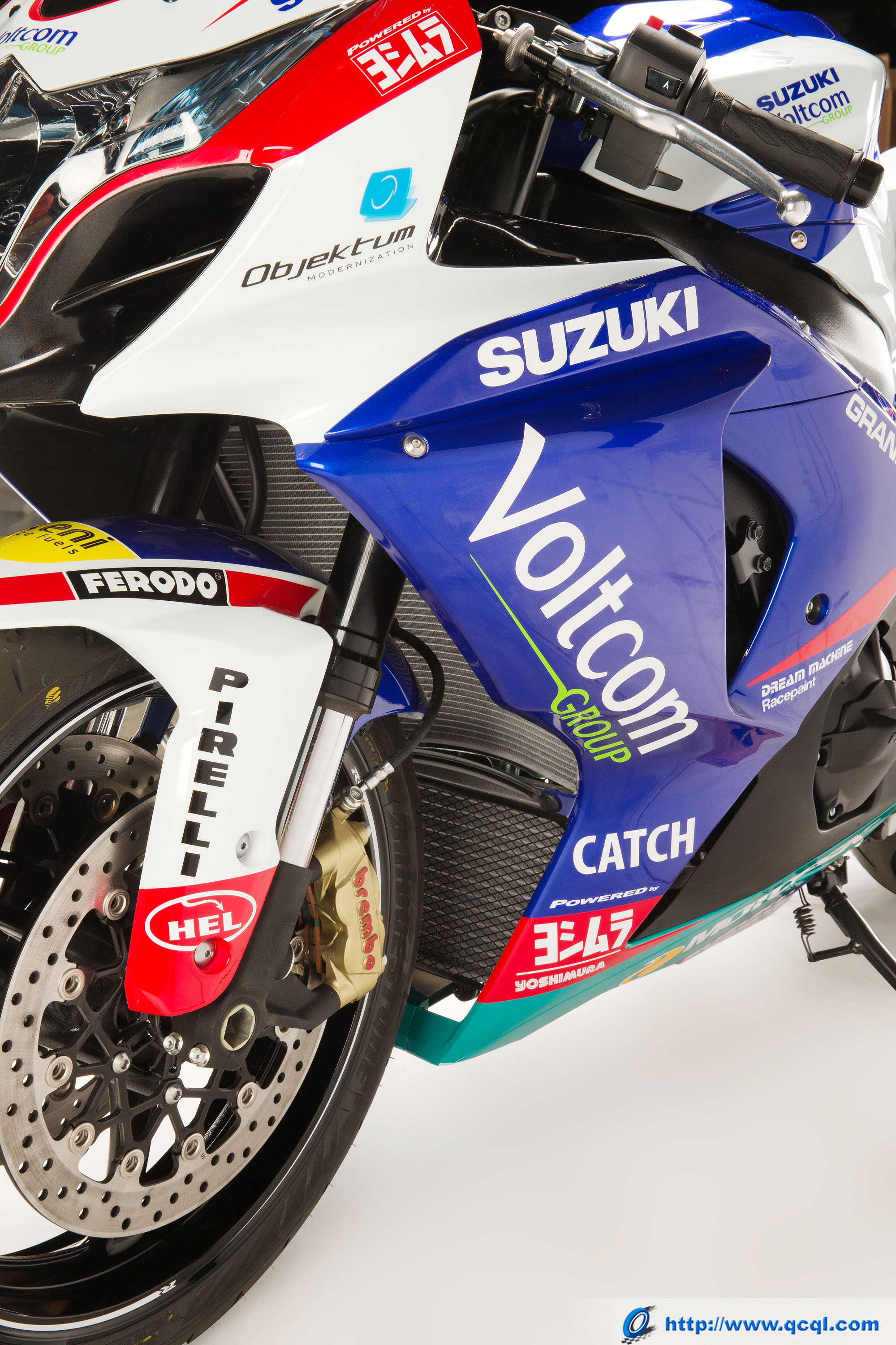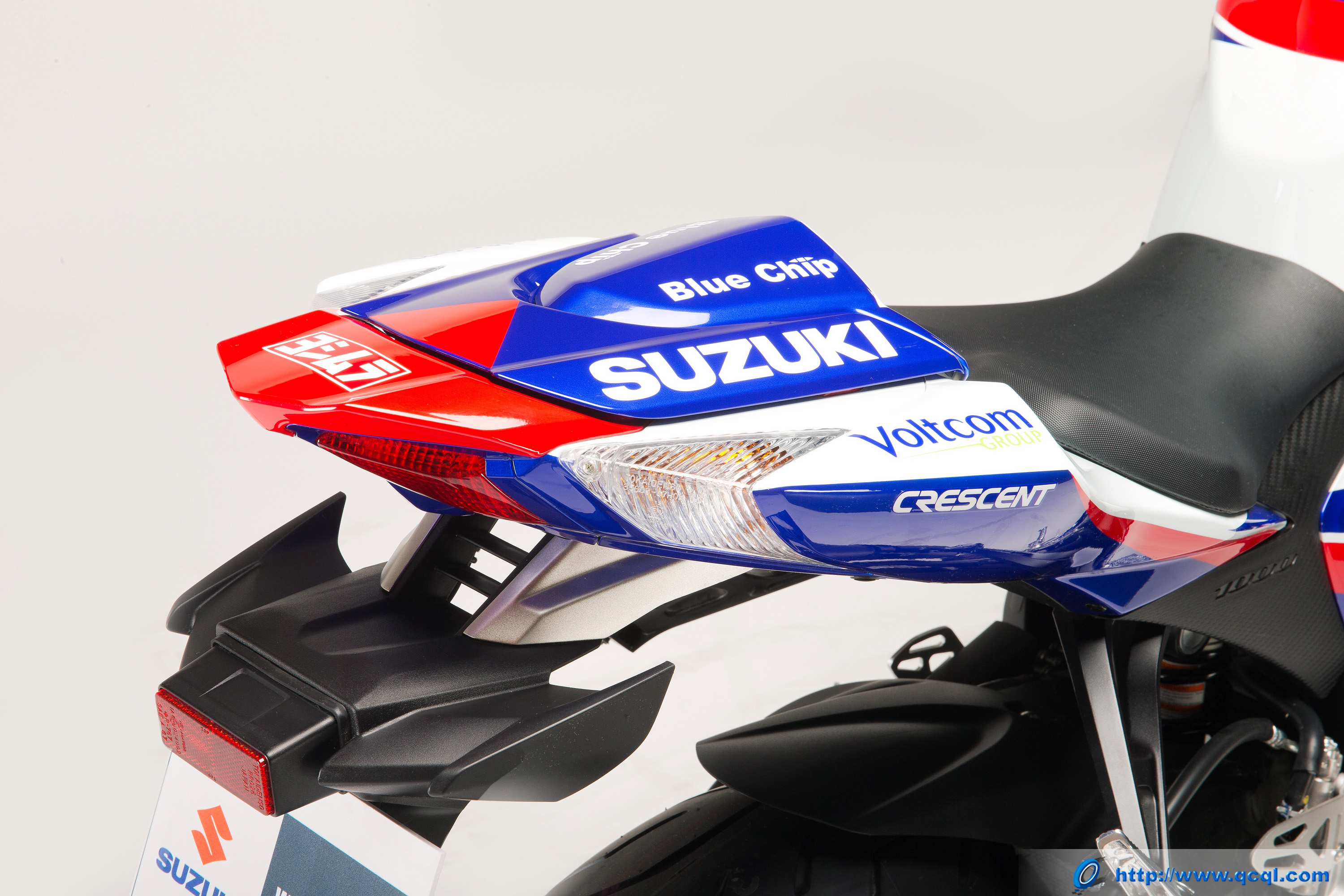 Suzuki 向英國(guó)市場(chǎng)發(fā)布了2014' GSX-R1000 SBK 廠隊(duì)圖案限量復(fù)制版。與標(biāo)準(zhǔn)版相比,這部 SBK 廠隊(duì)圖案限量復(fù)制版的變化,首先是外觀圖案采用的 Voltcom Crescent 車隊(duì)的涂裝;以吉村的 R77 排汽管作為標(biāo)配;發(fā)動(dòng)機(jī)的側(cè)蓋采用了 GB Racing 的產(chǎn)品;后座位配一個(gè)原廠的外蓋、讓車輛在外觀上更接近賽車。