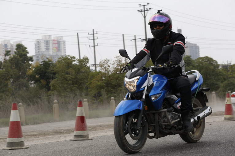 進入南昌后,轉(zhuǎn)向105國道,混亂的交通,惡劣的路況,高溫的熾烤,離譜的限速,讓隊員們吃盡了苦頭。拍攝車中的小編雖然沒有塵土之苦,也被破損路面顛簸得疲憊不堪,而且在多處都遇到堵車,無法跟上靈活的GW250大部隊。