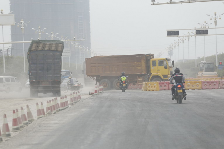 摩托車的優(yōu)勢在這里顯露無遺,在修路路段,摩托車可以靈活地選擇輔路或者已經(jīng)鋪好的路面前進,而汽車就只能在車龍里慢慢蠕動。