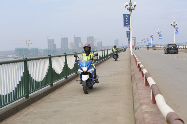 一早,自由之旅車隊來到常德桃花源景區(qū),尋找“世外桃源”來了。在景區(qū)外的大橋上,能看到桃花源已經近在眼前。