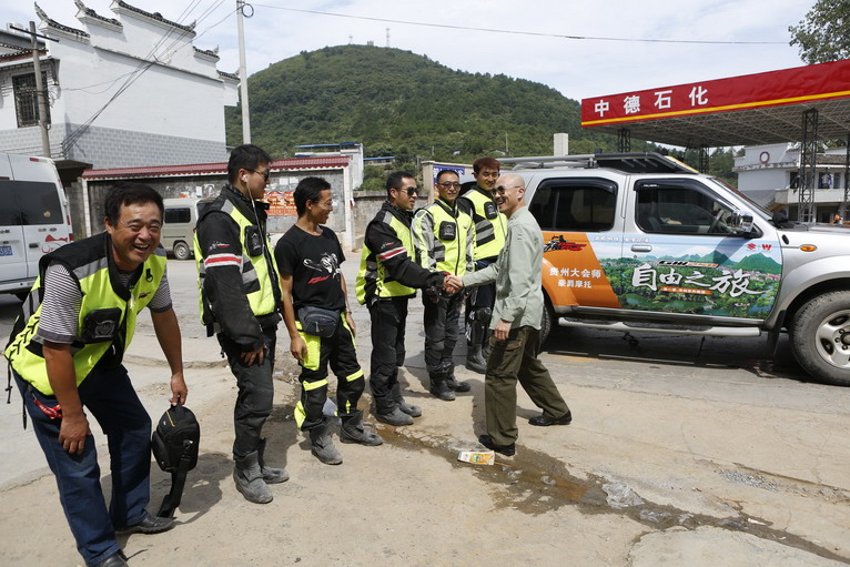 上午10:30,在與湖南接壤的貴州銅仁,騎手們惜別了“蔣委員長”劉永波,到這里,劉永波完成了他的“自由之旅”。