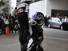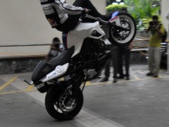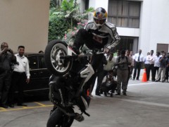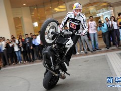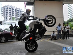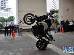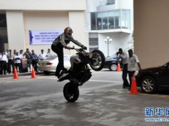 28日,在斯里蘭卡首都科倫坡進(jìn)行的摩托車特技表演。