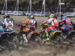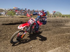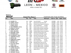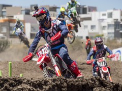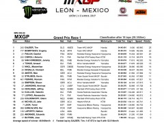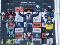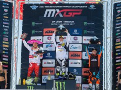 2017' MXGP(世界越野錦標(biāo)賽)第四站的比賽,上周日(四月 2 號)在墨西哥中部的 Leon 舉行。駕駛 243 號賽車的應(yīng)屆世界冠軍、斯洛文尼亞車手蓋澤爾(Tim Gajser,Honda)在隊(duì)友的掩護(hù)之下,毫無壓力地在 MXGP 級別兩節(jié)的比賽中都一路領(lǐng)先、贏得了冠軍。蓋澤爾的隊(duì)友、俄羅斯車手 E. Bobryshev 和胡斯跨(Husqvarna,胡斯瓦那)工廠車隊(duì)的法國車手 G. Paulin 獲得了第一節(jié)比賽的第二、第三名。第二節(jié)比賽的亞軍、季軍則由凱羅尼(KTM)和 G. Paulin 所獲。