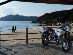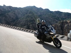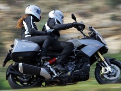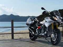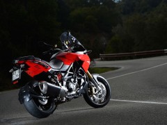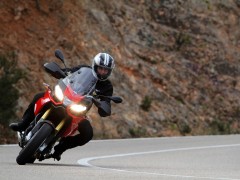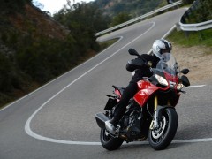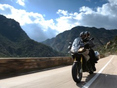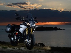 2013款 Aprilia Caponord 1200 全新歷險(xiǎn)旅行車 該款原型車Caponord 1000于2001年上市,士別十余載直到今日才推出后繼車型2013款Caponord 1200。全新車款配置了新式電子油門,可提供三種動(dòng)力模式,而ADD(Aprilla Dynamic Damping)半主動(dòng)式動(dòng)態(tài)避震技術(shù)乃首次使用。該車最大馬力128hp @ 8500rpm、最大扭力85 lb-ft @ 6500rpm、座高840mm。該款主打耐力街跑路線,具有安全、性能和舒適三大特點(diǎn)!