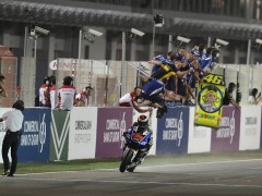 北京時(shí)間4月7日晚,2013年世界摩托車大獎(jiǎng)賽(MotoGP)揭幕戰(zhàn)卡塔爾站正式比賽結(jié)束,雅馬哈車隊(duì)包攬冠亞軍,洛倫佐從桿位發(fā)車以統(tǒng)治性優(yōu)勢(shì)奪冠,意大利“小飛俠”從第7位發(fā)車最終擊敗本田車隊(duì)馬奎茲獲得亞軍,后者獲得季軍,本田車隊(duì)另一位名將佩德羅薩獲得第四名。