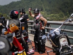 天津上百輛哈雷摩托車進(jìn)行萬圣節(jié)巡游
