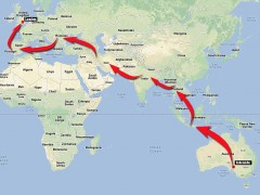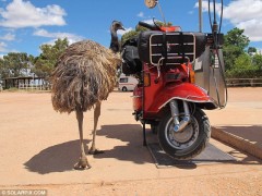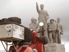 據(jù)報道,2011年3月,31歲的德魯從澳大利亞城市阿德萊德開始了他史詩般的冒險旅程。途經(jīng)土耳其、印尼、柬埔寨、馬來西亞、老撾等國,最終到達英國倫敦特拉法加廣場。一路上,他用相機記錄了到達的無數(shù)地方,與遇到的有趣路人合影,他的黃蜂牌小摩托車多次出現(xiàn)在各地的地標前。騎行過程中,德魯也遭遇了從酷暑到嚴寒的各種天氣。他打算將自己的環(huán)游經(jīng)歷集結(jié)成書出版。