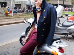 怎么去參加時裝周?莫非你真的幻想著好像明星紅毯一樣每個人都是從豪華轎車中走出來的?其實(shí)在米蘭時裝周的街頭,經(jīng)??吹?ldquo;追風(fēng)”而過的showgoer。有些是自行車,有些則選擇摩托車。說起來,香車和美女從來都是絕佳的搭配,時尚圈也對于摩托一事,總有著一份不可割舍的情懷。來到米蘭街頭,怎么能放過這些“追風(fēng)族”呢?