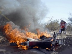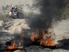 北京時(shí)間1月10日凌晨,2013年達(dá)喀爾拉力賽第五賽段,摩托車組方面,KTM的科馬成為了今天的大贏家。比賽中多輛賽車遭遇起火事故。