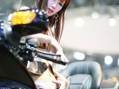 韓國摩托車模粉粉黑酷裝出擊