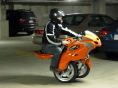 這款在國際電子消費展上亮相的變形摩托車,雖然不像電影《變形金剛》里博派或狂派那樣可以變身為會說話的機器人,但它能從單輪車瞬間變成標準雙輪摩托車。這輛折疊車采用了賽格威系統(tǒng),當單輪行駛時能夠保持良好的平衡性能,車身緊湊靈巧,很適合在擁擠的街道行駛。當?shù)竭_開闊地帶后,駕駛者只需按下變形按鈕,便可完成變形過程。據(jù)稱,這輛摩托車最高時速可達35英里每小時,預計將于明年上市。
