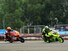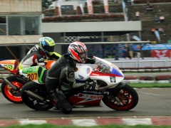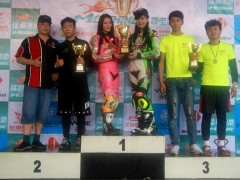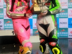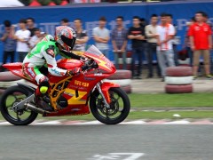 5月11日廣東三水電 (攝影 計丹妮)為期兩天的2014“猛獅電池杯”全國公路摩托車錦標(biāo)賽(CRRC)在廣東三水森林公園賽車場圓滿落幕。今日廣東全省的大多數(shù)地區(qū)都是暴雨如注,而三水卻只是一直陰天。最終,改裝150CC的冠軍被五羊本田車隊的小將陳鵬遠(yuǎn)摘得;廠商杯250CC組,老將何智鋒眾望所歸位列第一;比亞喬踏板125CC組別的冠軍則是來自西安幼獸王車隊的李宗;踏板公開A、B組的冠軍分別是KOSO偉業(yè)達(dá)車隊的薛文俊、莊浚偉。備受關(guān)注的新蜂女子車隊則奪得比亞喬踏板125CC組隊賽冠軍。
